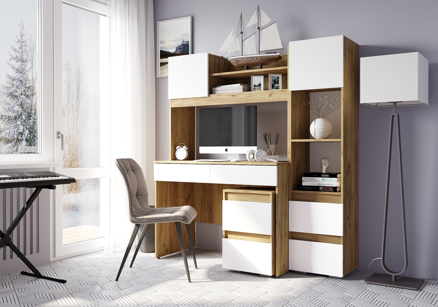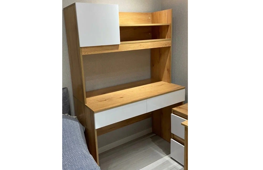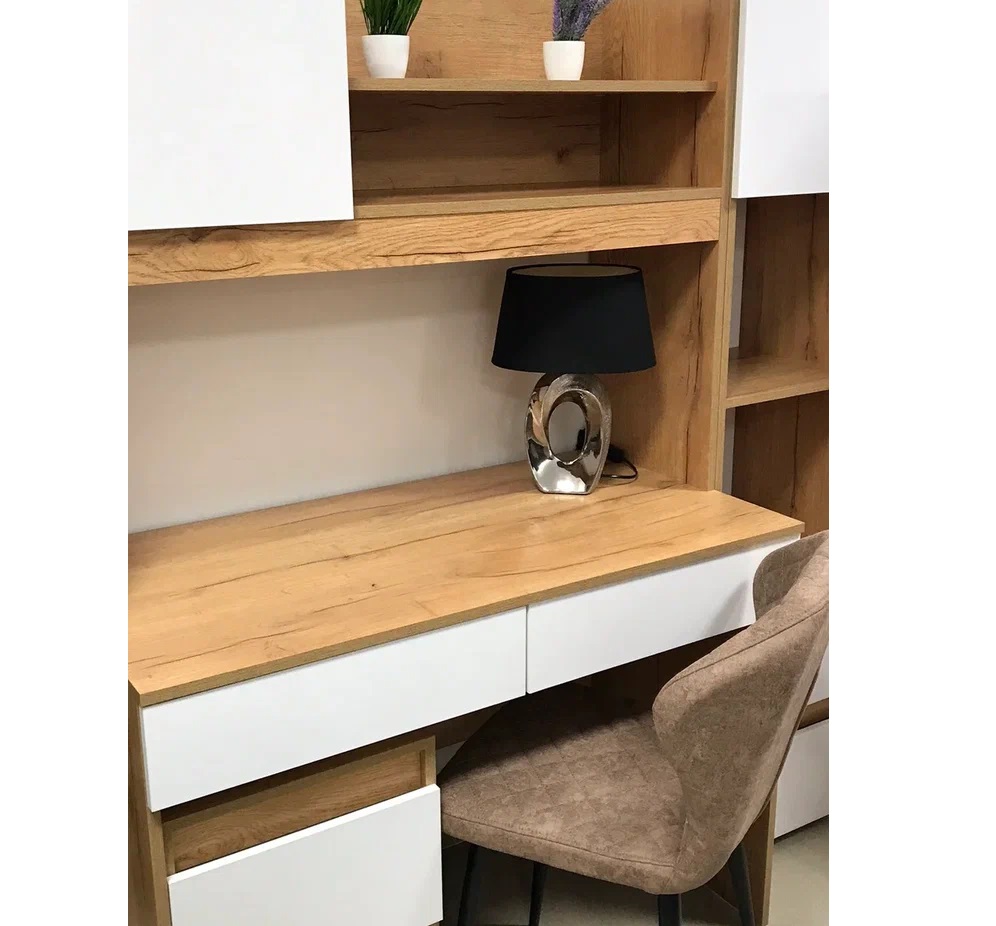Селфи - комплект мебели для организации рабочего уголка Вашего ребенка. Состоит из вместительного письменного стола с надстройкой, тумбы с выкатными ящиками и шкафа-пенала. Мебель выполнена из ЛДСП в практичном декоре крафт/белый, поэтому впишется в любой по стилю интерьер. Особенности трендовый декор крафт/белый глянец регулируемые подпятники максимальная нагрузка на ящик и полку - 5 кг сочетание открытых и закрытых зон хранения шариковые направляющие полного, плавного и бесшумного выдвижения
