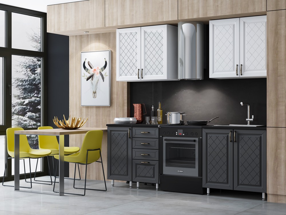 - Глубина шкафов: Верхние 300 мм/Нижние 450 мм/Глубина столешницы 600 мм